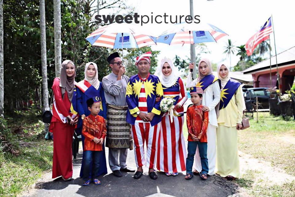 Mar pun tak tahu juga bridesmaid kena pakai ikut tema pada mulanya . Then k.kim kata setiap orang akan pakai baju warna one of bendera. Wahh! Excited! Masa tu tak leh emagine lagi kan , cantik ke tak tapi dah excited melompat2 dah dalam hati sebab mesti unik gila! hhe Memang suka kalau lain dari yang lain ni . Buat apa nak malu, kena la berani ! hhe Lagipun ia menunujukkan semangat kita utk sambut hari kemerdekaan . Bukan utk jatuhkan martabat negara pun . Eceh hhe Sorry Mar tak layan komen komen kritik negatif ni .